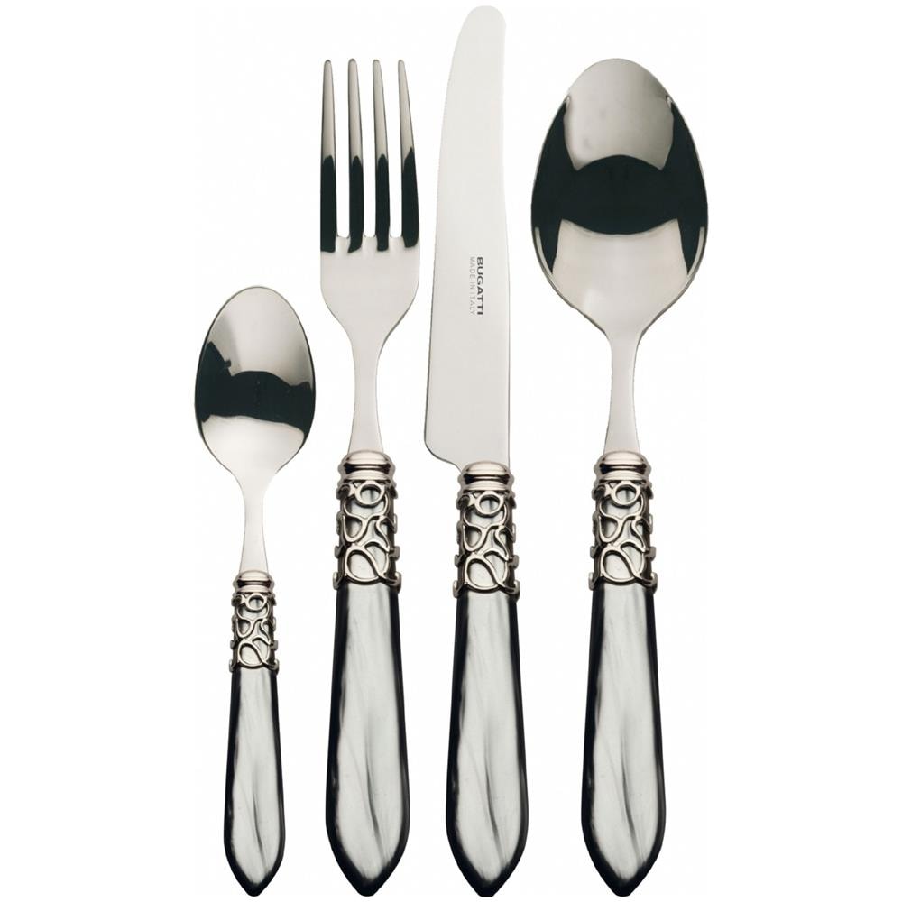 Set 24 pezzi confezionato in scatola litografata compact, colorazione del manico grigio madreperla con finitura della ghiera cromata. Il set 24 pezzi è composto da: 6 cucchiai da tavola6 forchette da tavola6 coltelli da tavola6 cucchiaini caffè 27x19x10 cm si consiglia di lavare a mano è possibile il lavaggio in lavastoviglie fino a una temperatura di 50/55°c. . . .