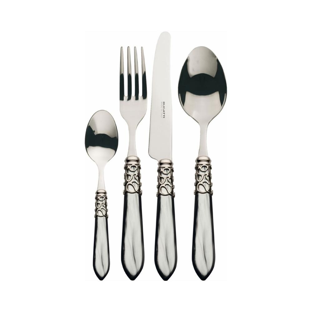 Set 24 pezzi confezionato in scatola gallery, colorazione del manico madreperla con finitura della ghiera cromata. il set 24 pezzi è composto da: 6 cucchiai da tavola 6 forchette da tavola 6 coltelli da tavola 6 cucchiaini caffè materiale: acciaio inossidabile 18/10, acrilico, ghiera cromata finitura: colore con effetto madreperla.