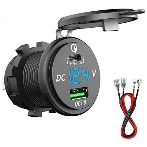 Caricabatterie Auto Tipo C Presa Usb Presa Di Auto Presa Per Caricabatterie Rapido Impermeabile Con Voltmetro A Led Per Auto Da Barca (verde)