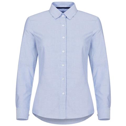 Camicia donna manica lunga. Tessuto con trattamento easy-care. Versione uomo con taschino e colletto button-down nascosto. Polsini regolabili con bottoni. Vestibilità slim-fit.