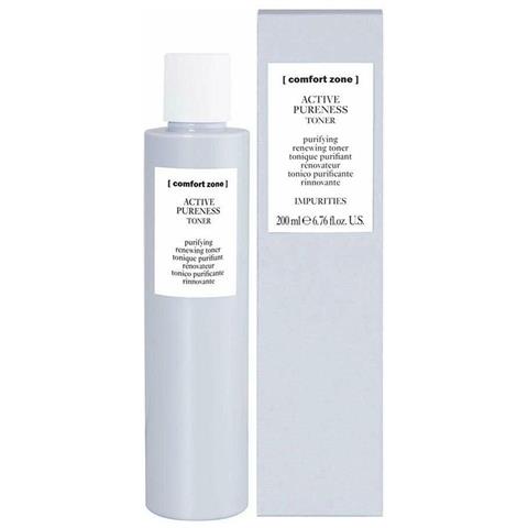 Comfort zone active pureness toner è un tonico purificante astrigente delicato che agisce rimuovendo le cellule morte, depurando l'epidermide e richiudendo i pori, così da ultimare la pulizia del viso. Non contiene alcool. La sua formula contiene ingredienti naturali al 96% ha un'azione esfoliante e purificante ed è ideale in caso di pelle oleosa per ridurre la presenza di impurità e pori dilat...