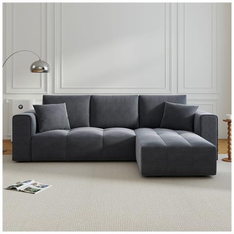 Divano angolare convertibile 4 posti con contenitore in velluto grigio antracitecon le sue linee pulite e i suoi volumi generosi, questo divano angolare si impone come un pezzo centrale del soggiorno. Il suo rivestimento in velluto, disponibile in beige, grigio antracite o giallo, apporta un tocco elegante e caldo, giocando con la luce per esaltare il materiale. La seduta strutturata e la trapu...
