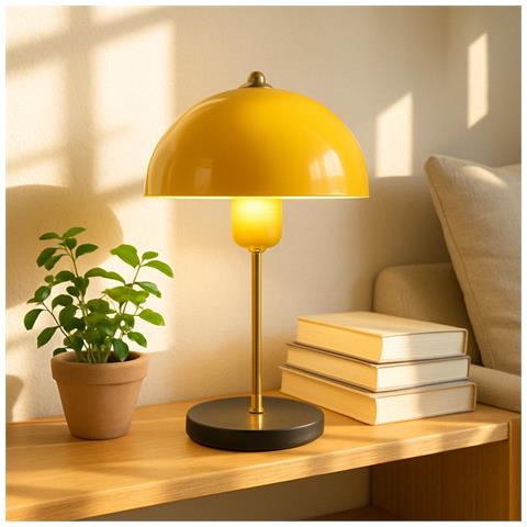 Lampada da tavolo fungo nero 49cmquesta lampada da tavolo in metallo nero si distingue per il suo design sobrio e deciso. Il suo cappello arrotondato in metallo, sostenuto da un gambo sottile e diritto, crea un bel equilibrio visivo che arreda istantaneamente una scrivania, una console o un comodino. Con le sue dimensioni compatte (23x12x49 cm), si integra facilmente in tutti gli spazi, anche i...
