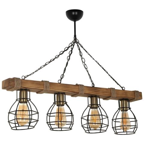 Lou Suspensión Fila 4 Lámparas Madera Y Metal