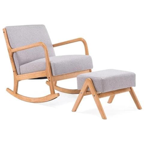 Sedia A Dondolo + Pouf In Legno Scandinavo E Tessuto Grigio Holmes