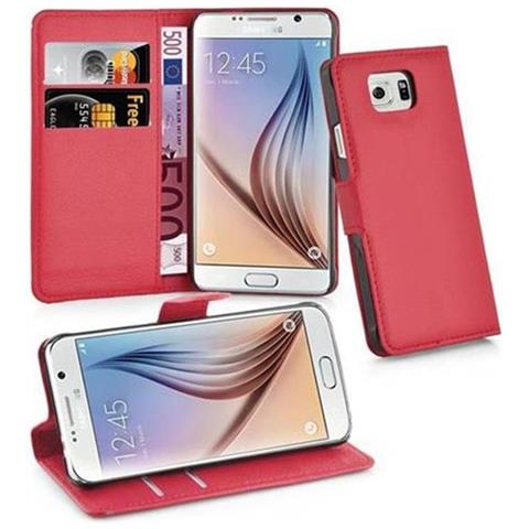 Custodia Compatibile Con Samsung Galaxy S6 In Rosso Carminio - Coperchio Protettiva Con Chiusura Magnetica, Funzione Stand E Tasca Per Le Carte