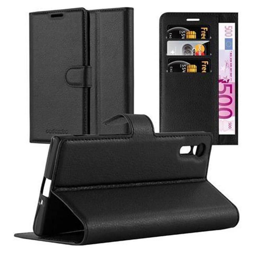Custodia Compatibile Con Sony Xperia Xz / Xzs In Nero Carbone - Coperchio Protettiva Con Chiusura Magnetica, Funzione Stand E Tasca Per Le Carte