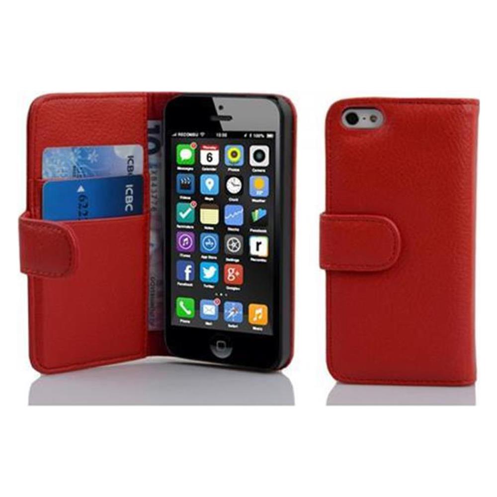Custodia Compatibile Con Apple Iphone 5c In Rosso Cremisi - Coperchio Protettivo In Ecopelle Testurizzata E Tasca Per Carte Di Credito