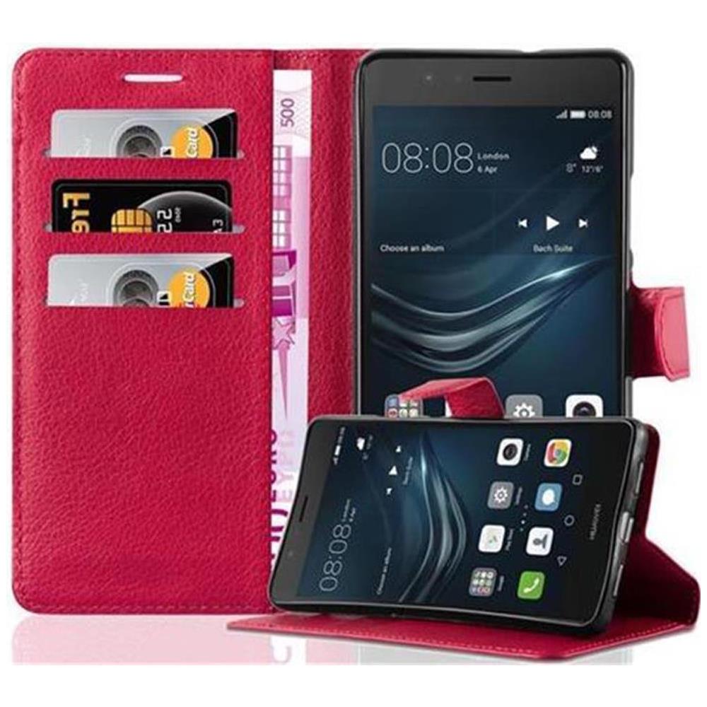 Custodia Compatibile Con Huawei P9 Lite In Rosso Carminio - Coperchio Protettiva Con Chiusura Magnetica, Funzione Stand E Tasca Per Le Carte