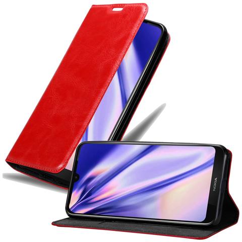 Custodia Compatibile Con Nokia 4.2 In Rosso Mela - Coperchio Protettiva Con Chiusura Magnetica, Funzione Stand E Tasca Per Le Carte