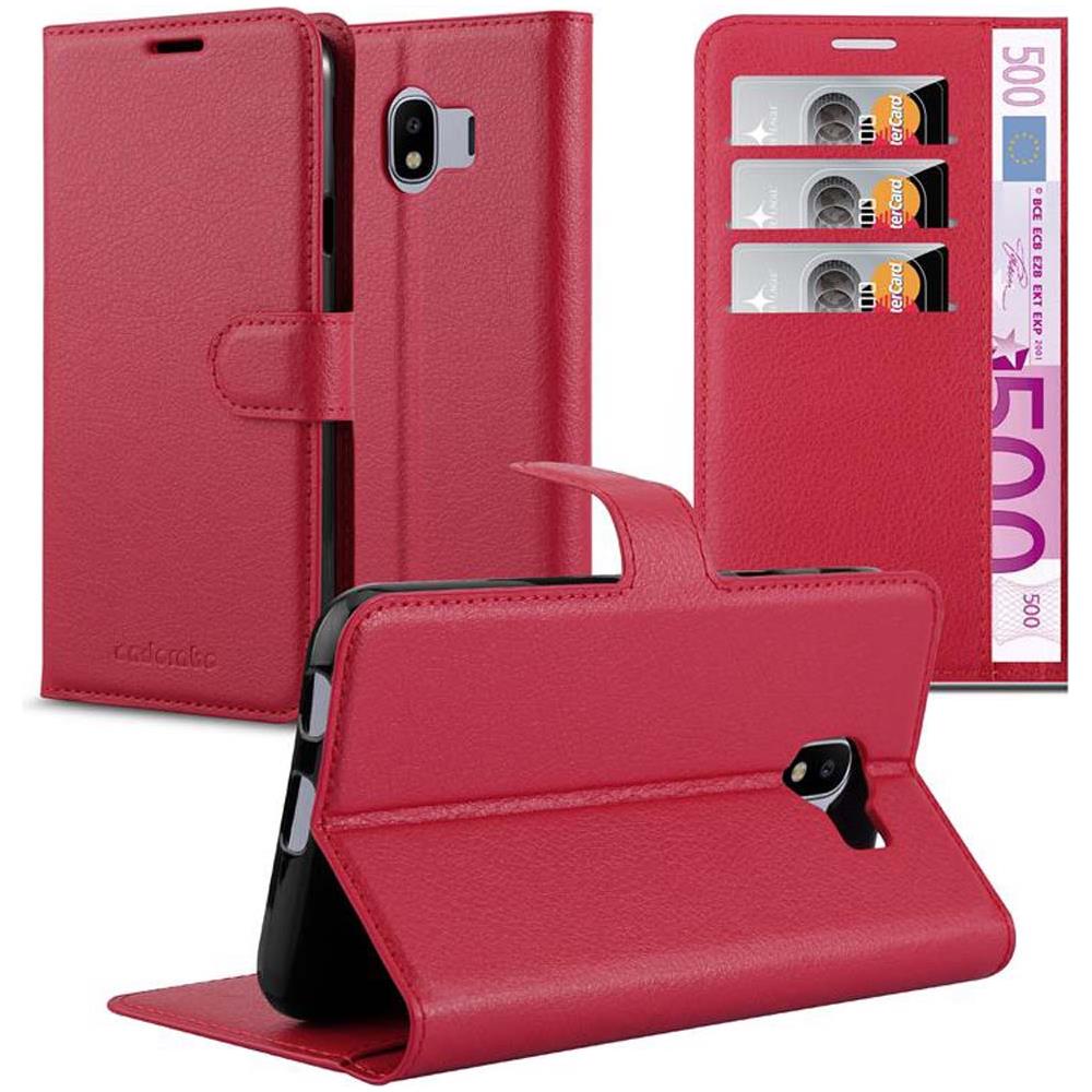 Custodia Compatibile Con Samsung Galaxy J4 2018 In Rosso Carminio - Coperchio Protettiva Con Chiusura Magnetica, Funzione Stand E Tasca Per Le Carte