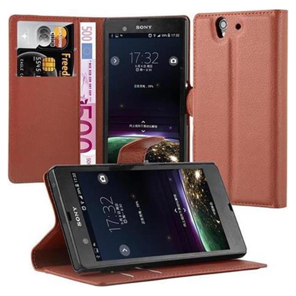 Custodia Libro Compatibile Con Sony Xperia Z In Marrone Pastello - Con Vani Di Carte, Funzione Stand E Chiusura Magnetica - Portafoglio Cover Case Wallet Book Etui Protezione