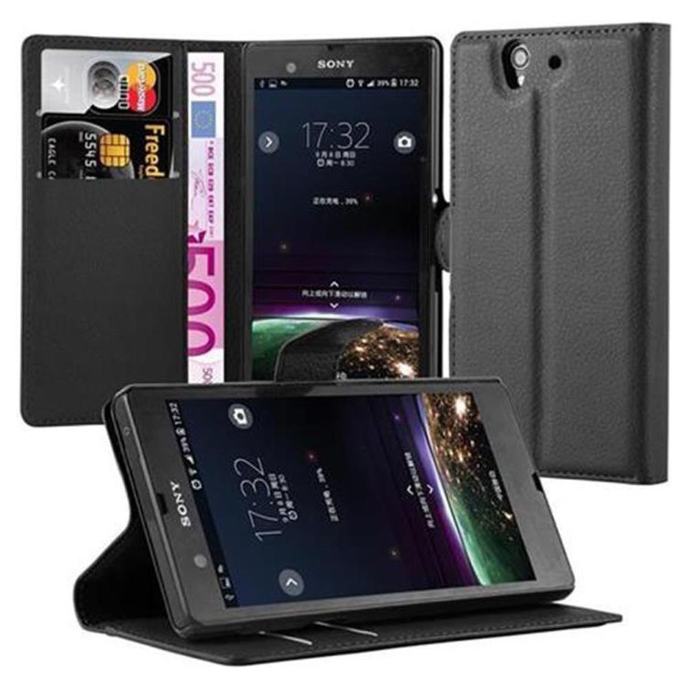 Custodia Libro Compatibile Con Sony Xperia Z In Nero Carbone - Con Vani Di Carte, Funzione Stand E Chiusura Magnetica - Portafoglio Cover Case Wallet Book Etui Protezione