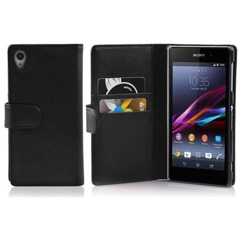 Custodia Compatibile Con Sony Xperia Z1 In Nero Ossido - Coperchio Protettivo In Ecopelle Testurizzata E Tasca Per Carte Di Credito