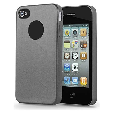 Cadorabo custodia per apple iphone 4 / iphone 4s in grigio metallico - morbida cover protettiva sottile di silicone tpu con bordo protezione - ultra slim case antiurto gel back bumper guscio.