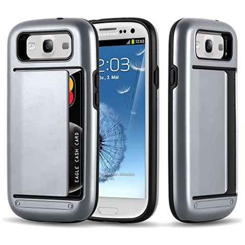 Samsung Galaxy S3 / S3 Neo Custodia Silicone Tpu E Hard Case Guardian Carte In Argento Armatura Hybrid Cover Protettiva Con Bordo Protezione Back Case Ultra Slim Gel Plastica Bumper Fina