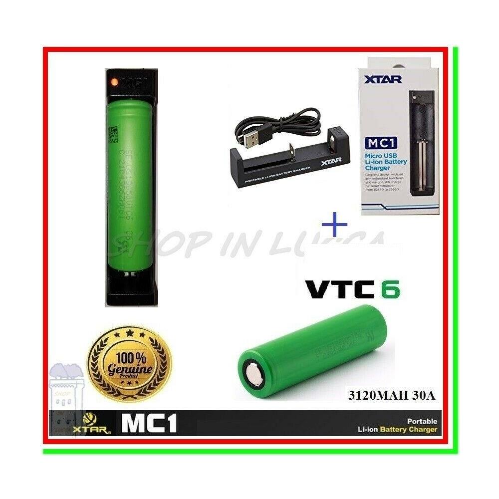 Caricabatterie Xtar Mc1 Usb + 1 Batteria Pila Litio Ricaricabile 18650 Vtc6 3120mah 3,6v 30a Di Scarico