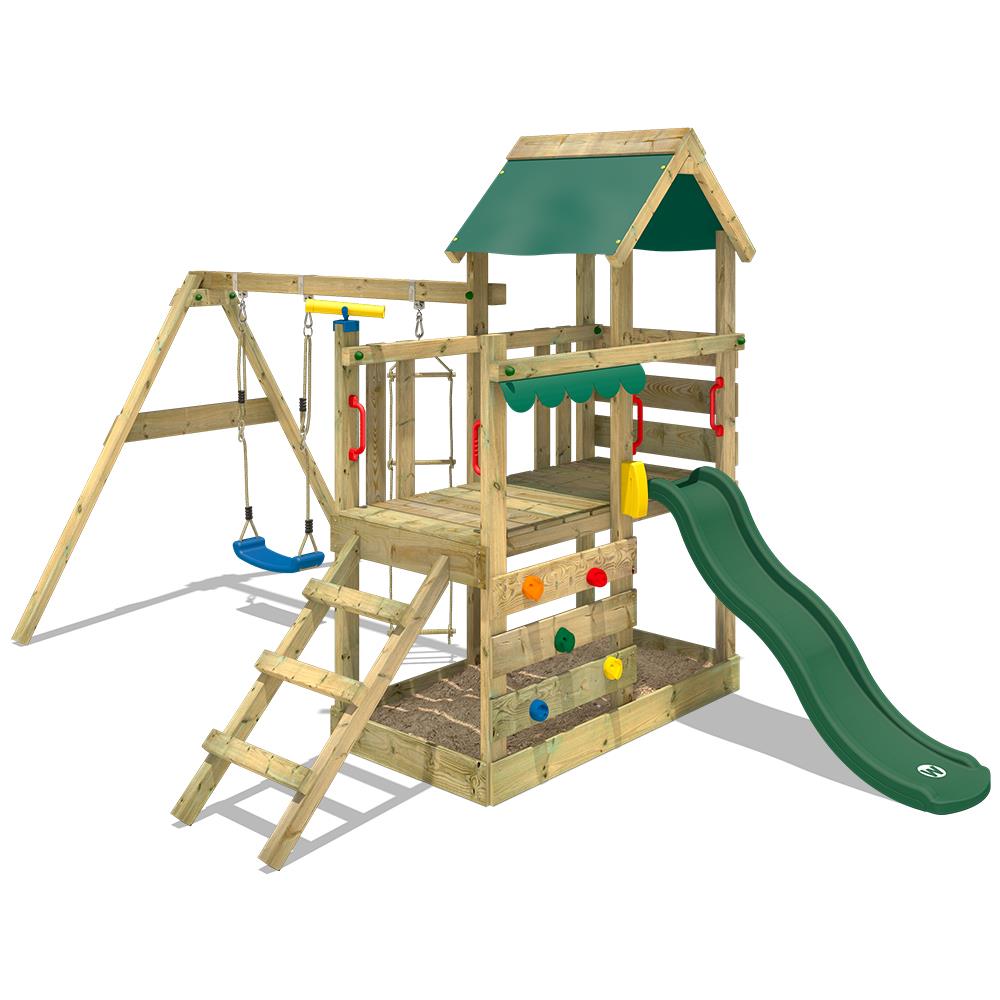 Si prega di notare: non si effettuano spedizioni verso le isole. Torre da gioco wickey turboflyer dettagli prodotto serie wickey flyer legno robusto impregnato in autoclave qualità e sicurezza testata diverse opzioni di installazione altezza piattaforma 90 cm pali montanti 9x4.5 cm trave dell’altalena 9x9 cm e questo è tutto compreso scivolo 175 cm seggiolino altalena....