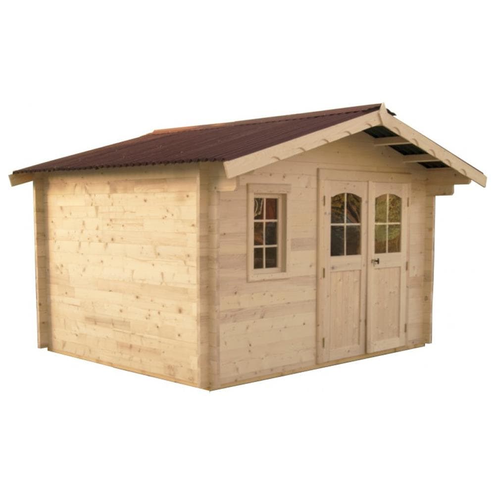 Casetta in legno nancy 3550.02 casetta da giardino materiale picea (fam pinaceae) massello non trattato umidità 14 – 18 %. Colore legno naturale, non trattato senza pavimento pendenza tetto 16° pareti in tavolame con doppia scanalatura, con linguette in abete spessore 42 mm. Porta doppia, anta in legno massello, con tenone e mortasa, semi-finestrata, dimensione cm 138 x 180 con serratura a tamb...