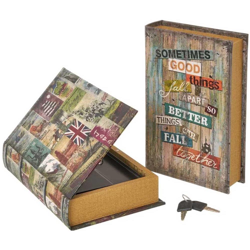 Cassaforte di Sicurezza Forma Libro con Due Chiavi Porta Valori Segreto Metallo