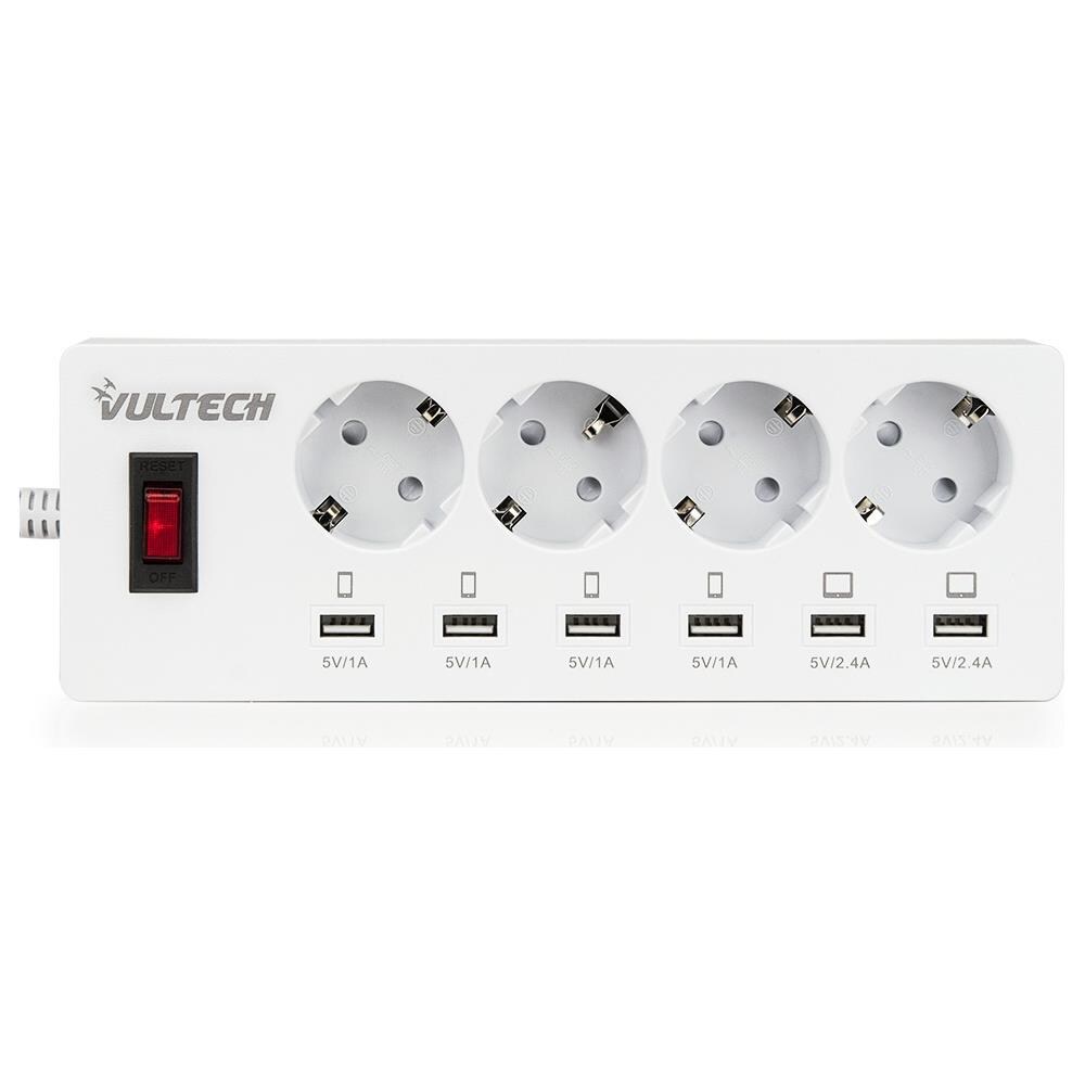 Vultech MU-04. Lunghezza cavo: 1,8 m, Posizionamento supportato: Interno, Materiale della scocca: Termoplastica. Quantità prese AC: 4 presa(e) AC. Massima potenza in entrata: 3500 W, Funzionalità di protezione dell'alimentazione: Sovraccarico, Cortocircuito. Larghezza: 230 mm, Profondità: 80 mm, Altezza: 40 mm
