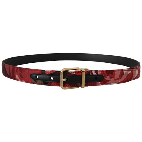 Cintura Fibbia Metallo Dorato Pelle Rosa Jacquard Rossa - 90 Cm / 3...