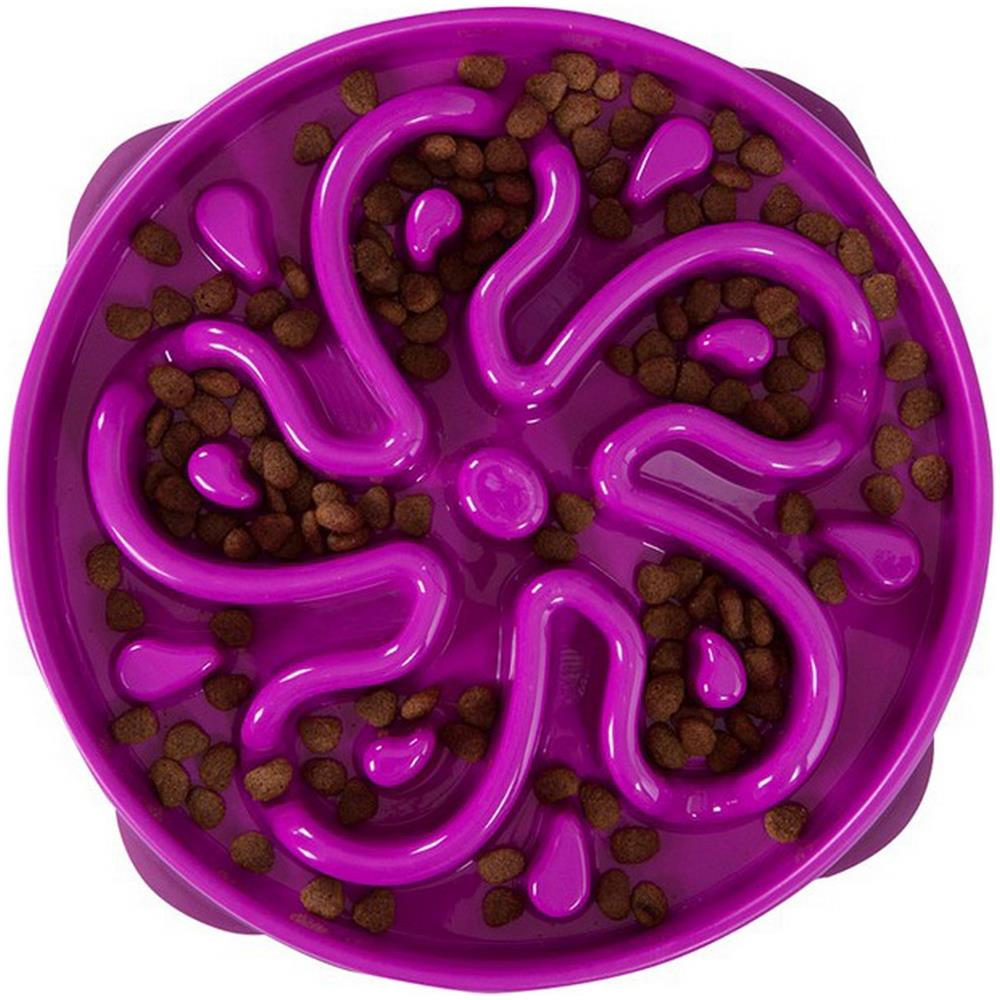 Realizzato con tunnel e zone rialzate per attirare l'attenzione del cane durante i pasti rende i pasti un momento divertente per il cane aiuta a prevenire il gonfiore, il rigurgito e l'obesità realizzato in plastica per uso alimentare base in materiale anti-scivolo senza bpa, pvc e ftalati misure - regolare, arancione: 32 x 28 x 6,5 cm, petrolio: 32 x 28 x 7cm, viola: 32 x 28 x 6 cm misure - mi...