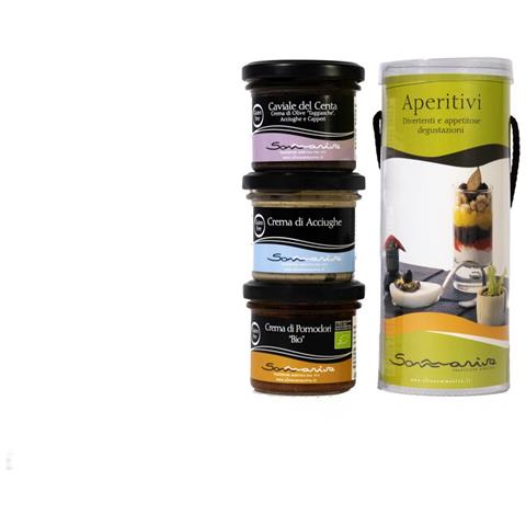Confezione regalo in tubo trasparente contenente 3 vasetti di creme da aperitivo (caviale del centa, crema di acciughe, crema di pomodori bio). Questo olio extravergine di oliva di pregiata qualità è un prodotto perfetto per le tue ricette, per le cene con amici e come regalo. E' contenuto in bottiglia scura per preservarne le caratteristiche organolettiche. collezione: aperitivi colore: marron...