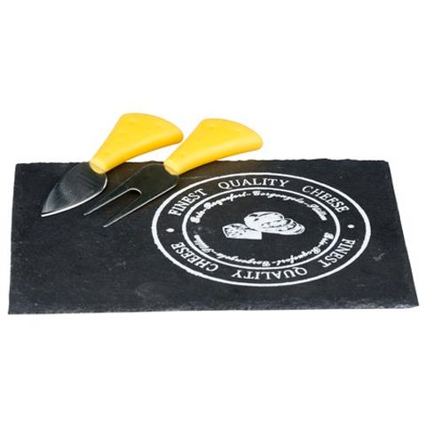 Set Coltello Forchetta Per Formaggio Con Vassoio Rettangolare In Ardesia Alpina