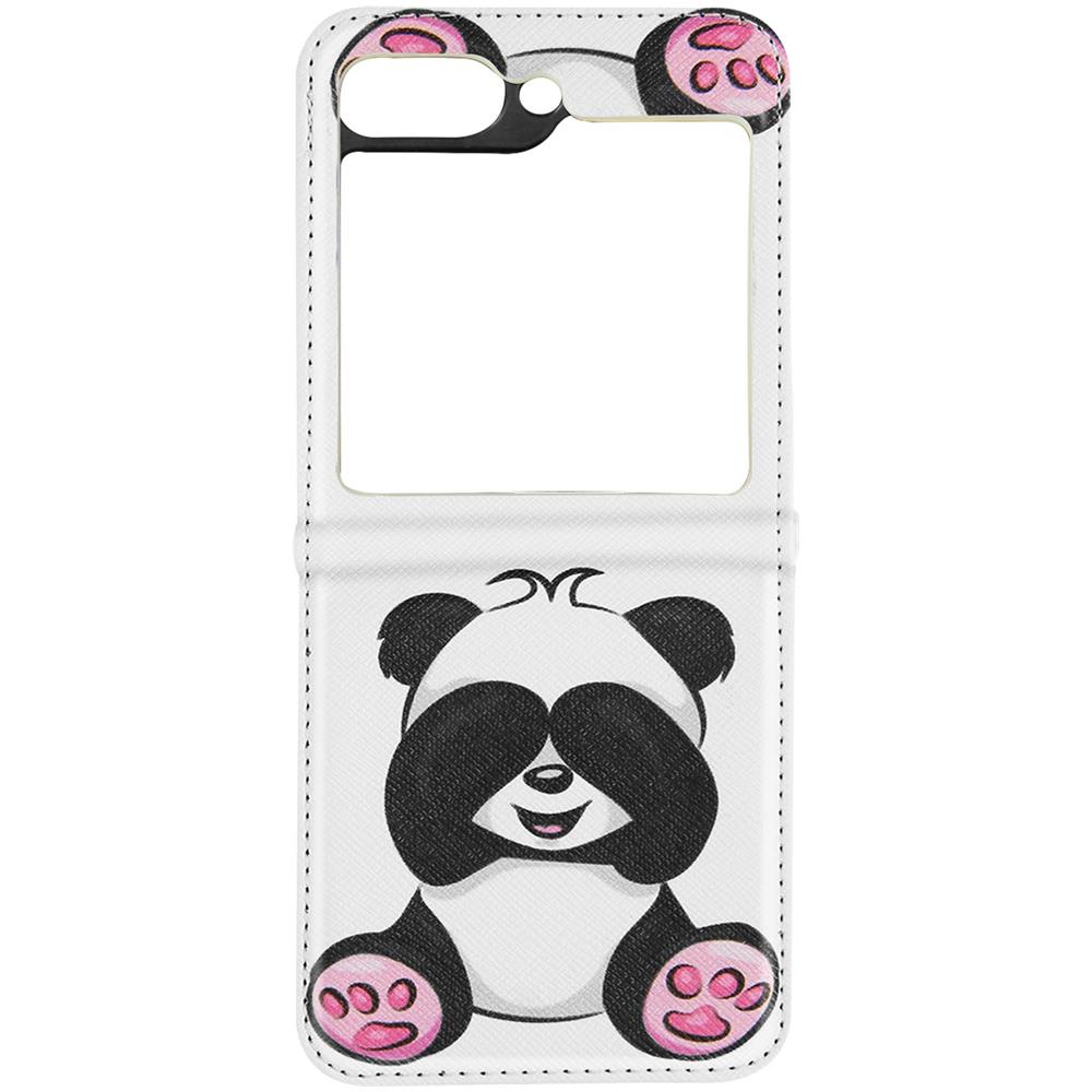 Cover Panda Per Samsung Galaxy Z Flip5 Rigida Rivestimento Similpelle Bianca