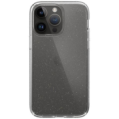 Cover con brillantini per iphone 14 pro max marca speck serie presidio perfect-clear glitter. Design elegante e unico con glitter. La tecnologia impact clear ammortizza gli urti. Anticaduta 4 metri. Trattamento antimicrobico. Compatibile con magsafe.