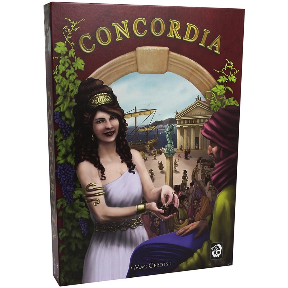 Concordia è un pacifico gioco di strategia e sviluppo economico ai tempi dell’antica Roma. Inviate coloni fino agli angoli più remoti dell’impero, sviluppate la vostra rete commerciale, ottenete il favore degli dei. Lingua: Italiano. Numero di giocatori: 2-5 giocatori. Età consigliata: 13 anni e più. Durata: 100 min.