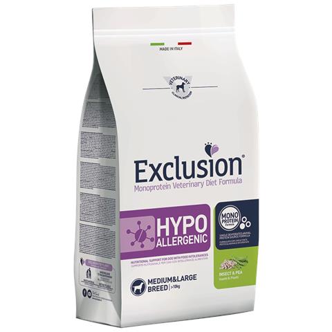 Le crocchette per cani adulti di taglia media e grande exclusion hypoallergenic medium insect & pea sono grain free e ricche di proteine 100% derivanti da insetti. Ideali per cani di taglia media e grande, con problemi di intolleranze a ingredienti e sostanze nutritive. Nonostante l'utilizzo di insetti sia ancora molto raro nel pet food, questa tipologia di proteine rappresenta un vero toccasan...