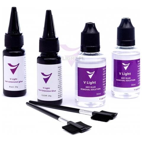 Set Di Colla Per Extension Per Capelli V-light Nero Trasparente 2x Pettine Removibile