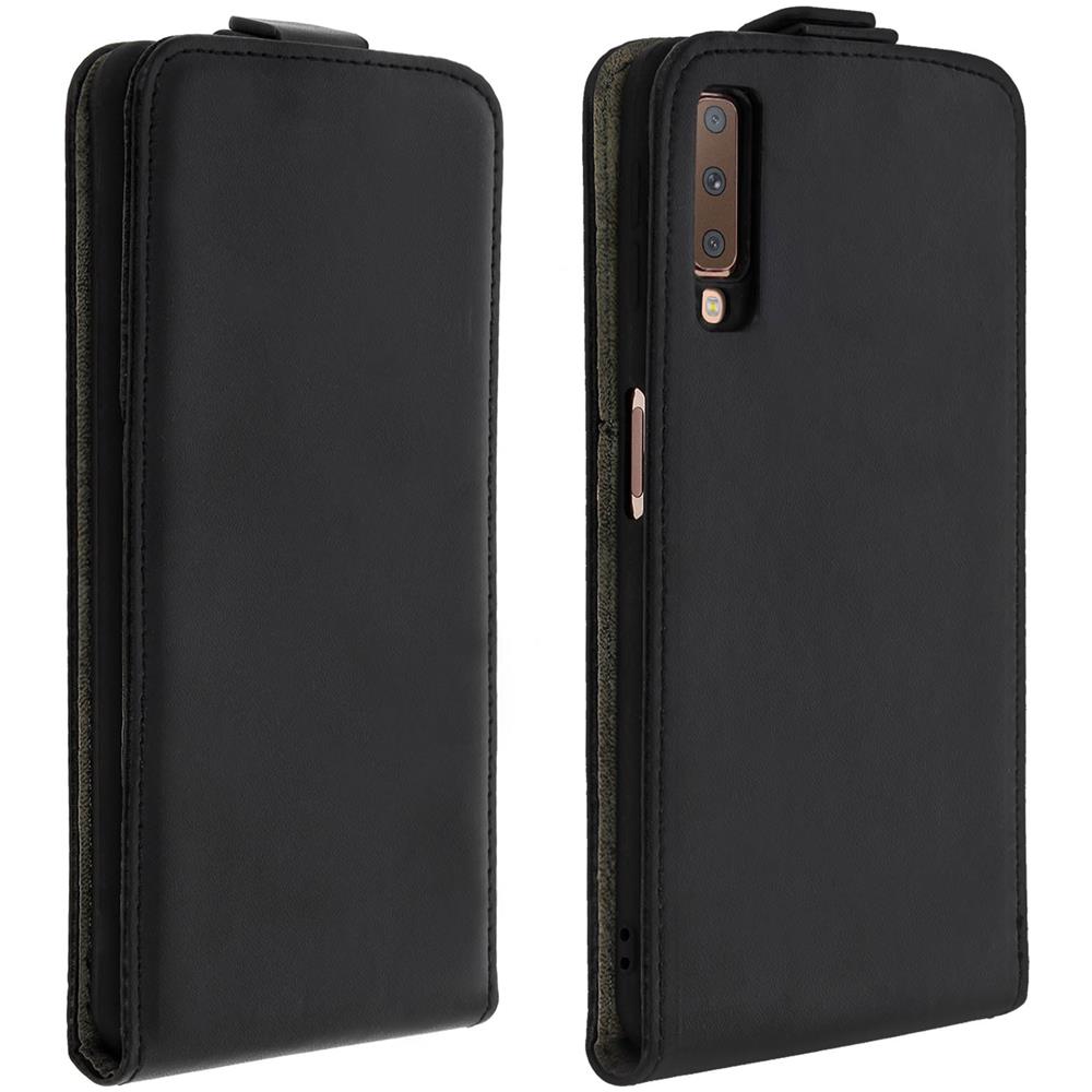 Custodia con sportellino verticale per samsung galaxy a7 2018. Protezione integrale a 360°. Cover di sostegno su misura in silicone gel. Tasca portacarte integrata. Rivestimento in similpelle. Chiusura con linguetta magnetica. Funzioni accessibili.