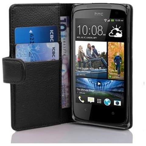 Custodia Libro Per Htc Desire 500 In Nero - Con Vani Di Carte E Funzione Stand Di Similpelle Strutturata - Portafoglio Cover Case Wallet Book Etui Protezione