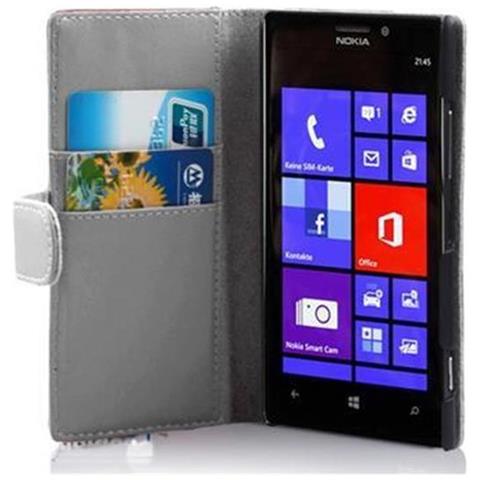 Custodia Libro Per Nokia Lumia 925 In Bianco - Con Vani Di Carte E Funzione Stand Di Similpelle Fine - Portafoglio Cover Case Wallet Book Etui Protezione