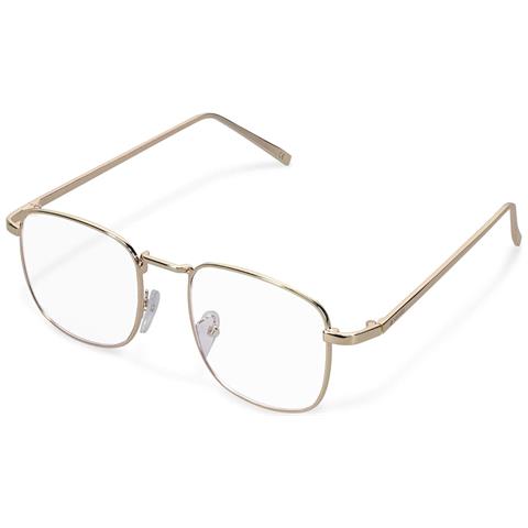 Navaris Occhiali Non Graduati Retro Donna Uomo - Occhiali Finti Da Vista Unisex Protezione Luce Blu Pc - Occhiale Antifatica Lenti Quadre - Design Oro