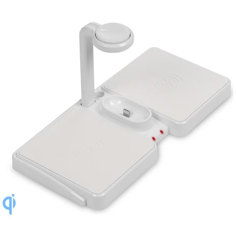 Dam Stazione Di Ricarica Wireless Qi Compatibile Con Ricarica Rapida Fast Charge Per Apple Watch, Airpods E 2 Iphone/samsung/smartphone 19x9x9 Cm. Colore Bianco