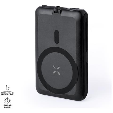 • batteria ausiliaria esterna con ricarica solare ed elevata capacità di carica -5.000 mah-. • con caricatore wireless integrato da 5 w e attacco magnetico magsafe, che consente di utilizzare il dispositivo mentre è in carica e compatibile con dispositivi dotati di tecnologia di ricarica wireless qi. • inoltre è dotato di luce led con due posizioni di luce, fissa e lampeggiante. • realizzato in...