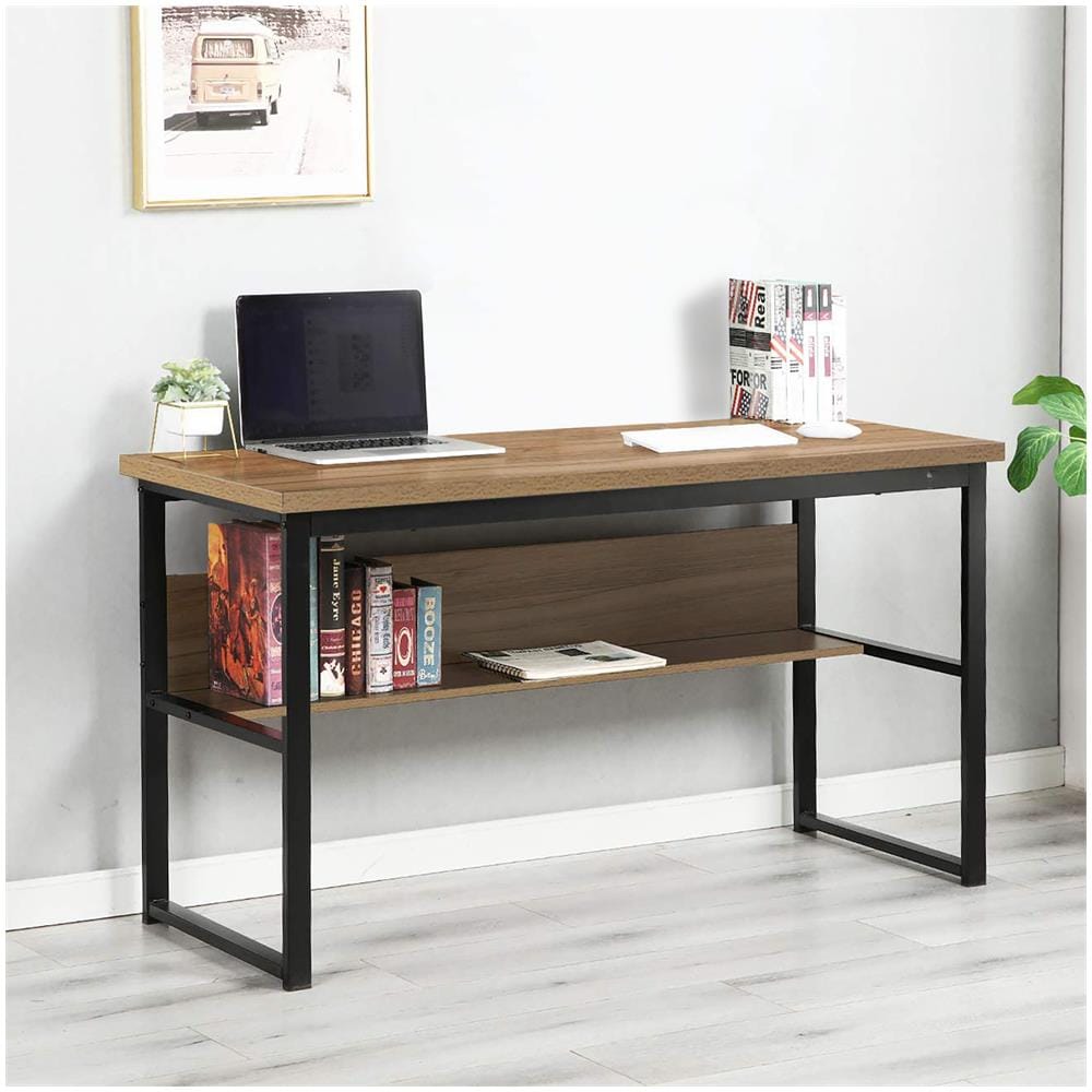 Scrivania Villava, Scrittoio Lineare, Scrivania Ufficio Multiuso, Tavolo Da Lavoro Salvaspazio, 55x139h74 Cm, Nero E Rovere