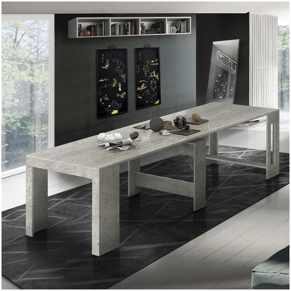 Tavolo Da Pranzo Moderno, Made In Italy, Consolle Allungabile Fino A 12 Posti, Con Portallunghe, Cm 51x90h77 (Fino A 300 Cm) Colore Cemento
