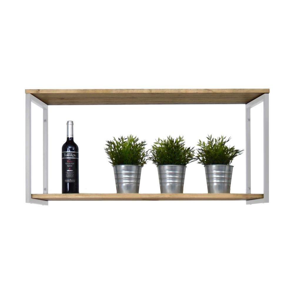 Mensola Da Parete Con Due Ripiani In Legno Massiccio De Pino 18mm. Legno Invechiatto In Stile Industriale. 120x30x47cm. Metallo Bianco