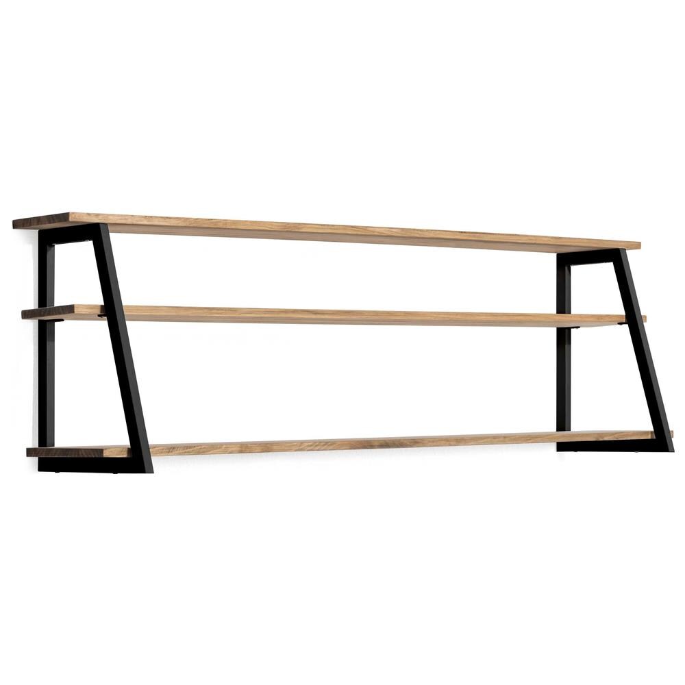 Mensola Da Parete Poligonale Ascendente Con Tre Ripiani In Legno Massiccio De Pino Spessore 18mm. Legno Invechiatto In Stile Industriale. 140x35x47cm. Metallo Nero