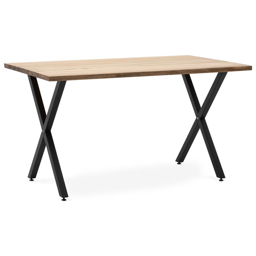 Tavolo da pranzo industriale in legno eco e gambe a tubo quadrato a forma di x 140 cm di lunghezza x 61 cm di larghezza x 75 cm di altezza. Nero prodotto e progettato in spagna.