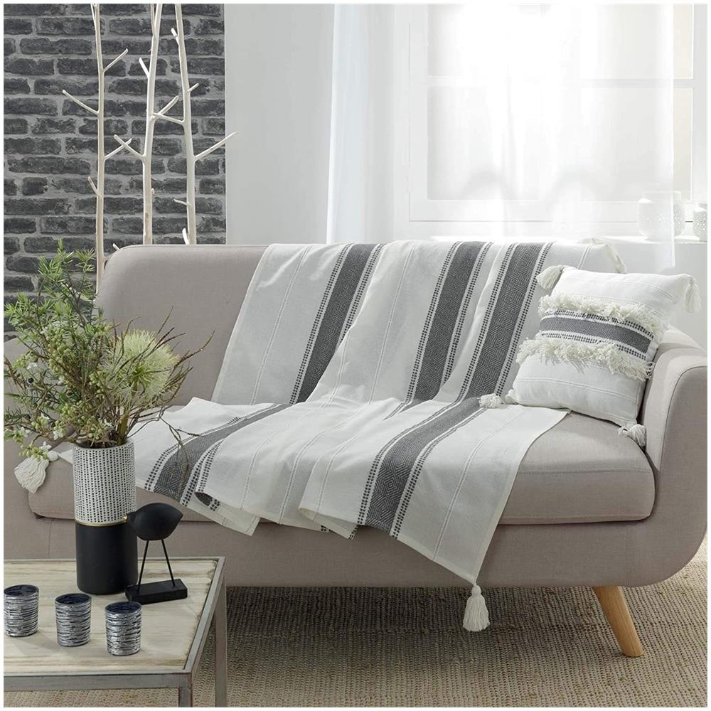 Biancheria Da Letto Decorativa Per Divano Indira, 125 X 150 Cm, Bianco In Cinture Grigie