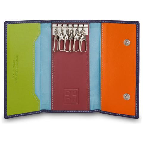 Marchio: DuDu. Materiale: Pelle di Vitello morbido. Dimensioni (a prodotto chiuso) : 12 × 6,5 × 1,7 cm. Peso: 60 g. Confezione: Sì. Genere: Unisex. Composizione generale: 6 ganci per agganciare le chiavi e 2 tasche interne. Colori disponibili: Nero, Rosso, Fuxia, Viola, Blu, Marrone Multicolore