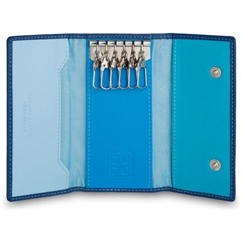 Portachiavi classico in pelle Multicolore a 6 ganci Blu