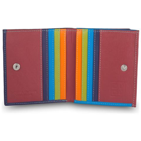 Marchio: DuDu. Materiale: Pelle di Vitello morbido. Dimensioni (a prodotto chiuso) : 9,5 × 10 × 2,3 cm. Peso: 80 g. Confezione: Sì. Genere: Unisex. Composizione generale: 1 portamonete esterno a pozzetto, 8 tasche porta carte di credito, 2 tasche porta banconote e 2 tasche extra. Colori disponibili: Nero, Marrone scuro, Rosso, Fuxia, Viola, Blu, Camel, Giallo, Turchese Multicolore