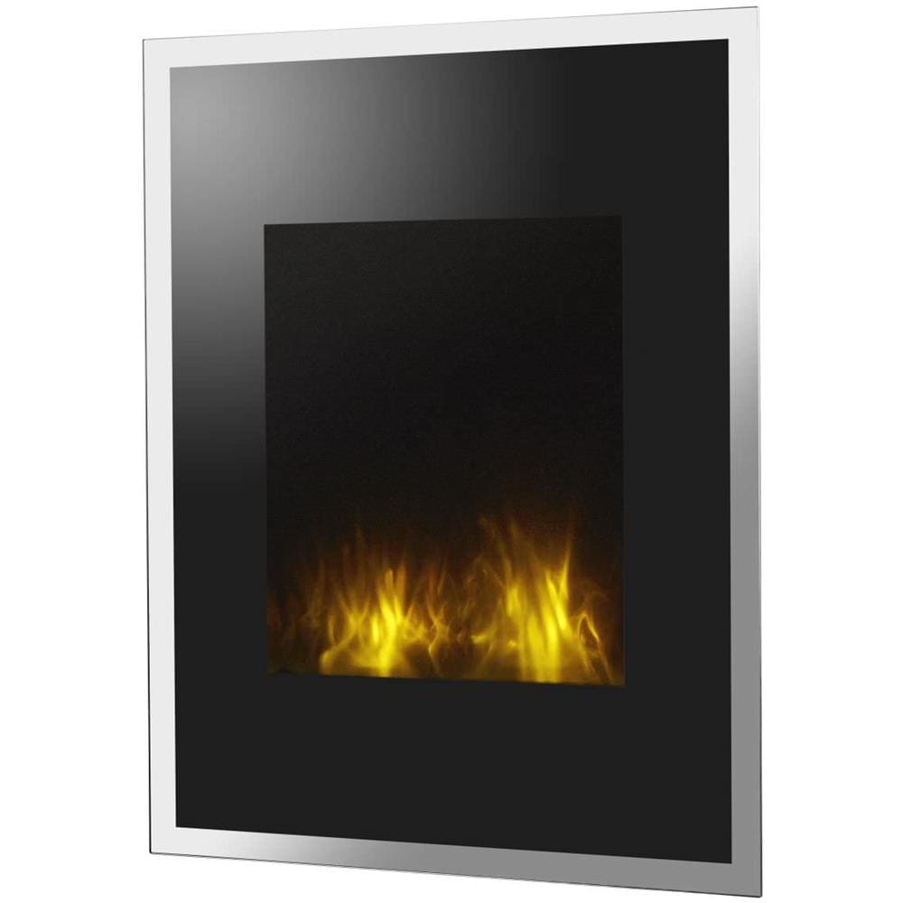 Caminetto elettrico decorativo da parete empire state camino elettrico nero con cornice in acciaio inox effetto fiamma mediante led non richiede canna fumaria potenza 900-1800w telecomando incluso.